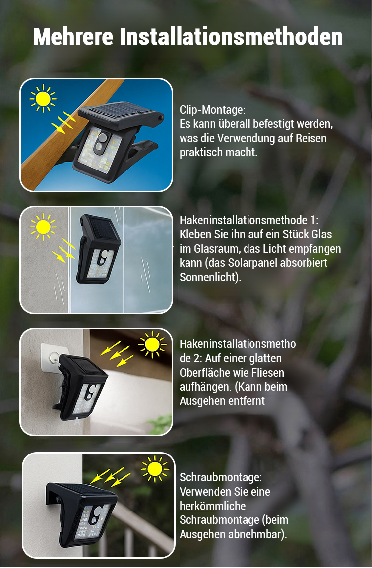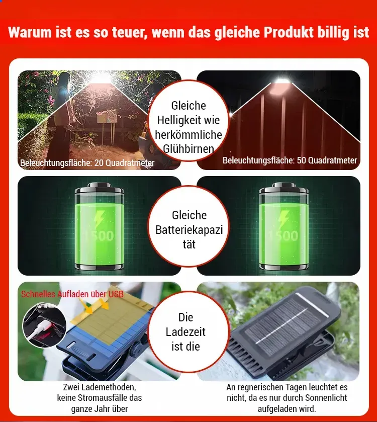 💡In 1 Sekunde montiert – lädt sich solar auf, 365 Tage lang 0 € Stromkosten! ✅️Intelligente Bewegungserkennung. 10 Jahre Garantie – kaputt? Gratis neues Gerät! 💯Perfekt für Garten, Flur, Camping, Angeln und mehr!
