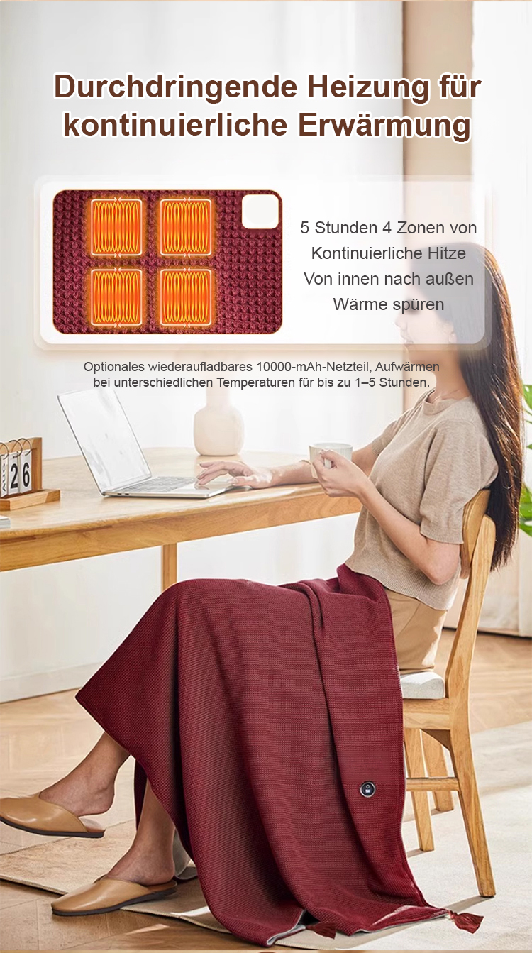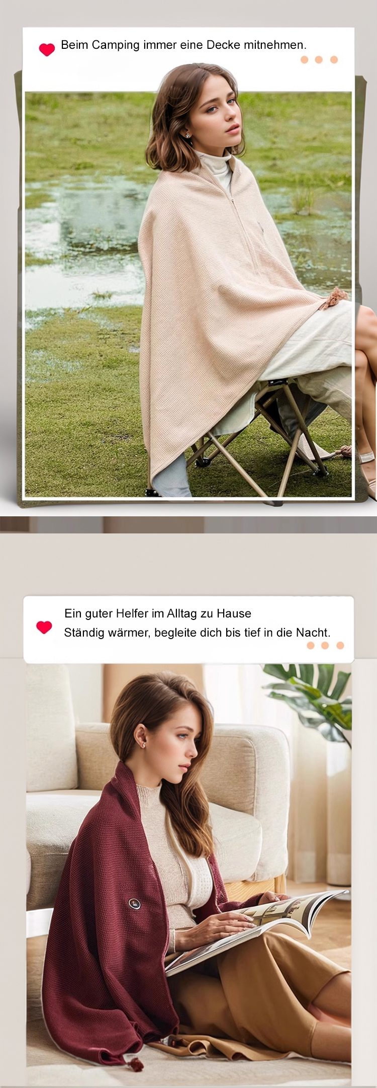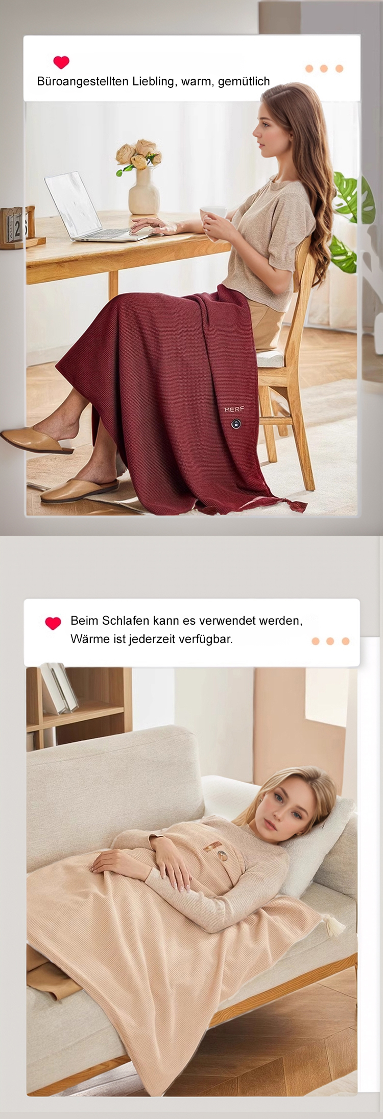 Drei bequeme Temperaturstufen zur Auswahl: ✅️35 °C: Perfekt als wärmender Schulterumhang zu Hause oder im Büro. ✅️45 °C: Ideal als Mittagsschlafdecke – so wachst du nicht mehr fröstelnd auf. ✅️55 °C: Speziell für ältere Eltern entwickelt, um Schultern und Knie gezielt und wohltuend zu wärmen.